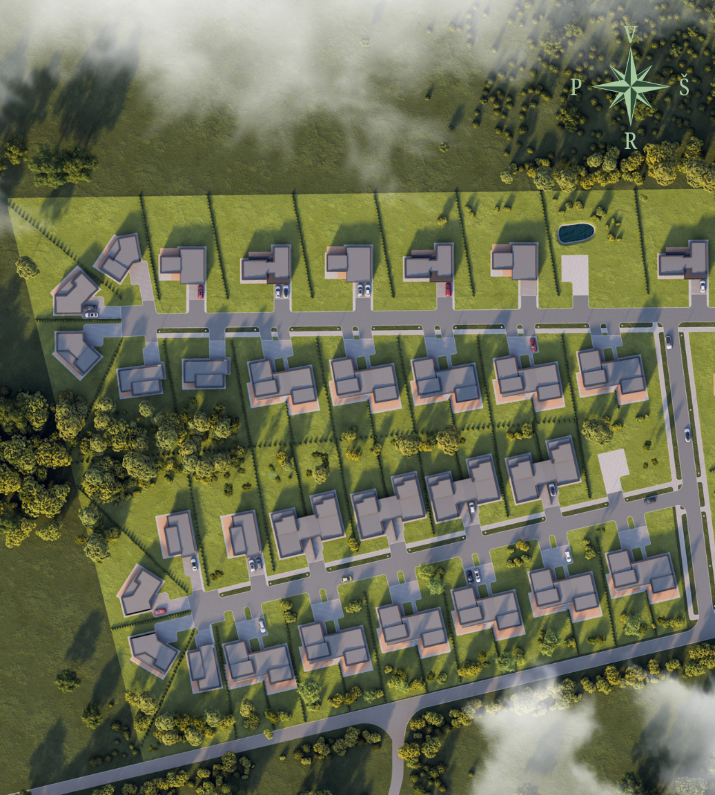 Projektuojant kvartalą, ypatingas dėmesys skirtas saugumui ir privatumui — sklypų išdėstymas ir juos skiriantys medžiai sukuria natūralią ramybės oazę