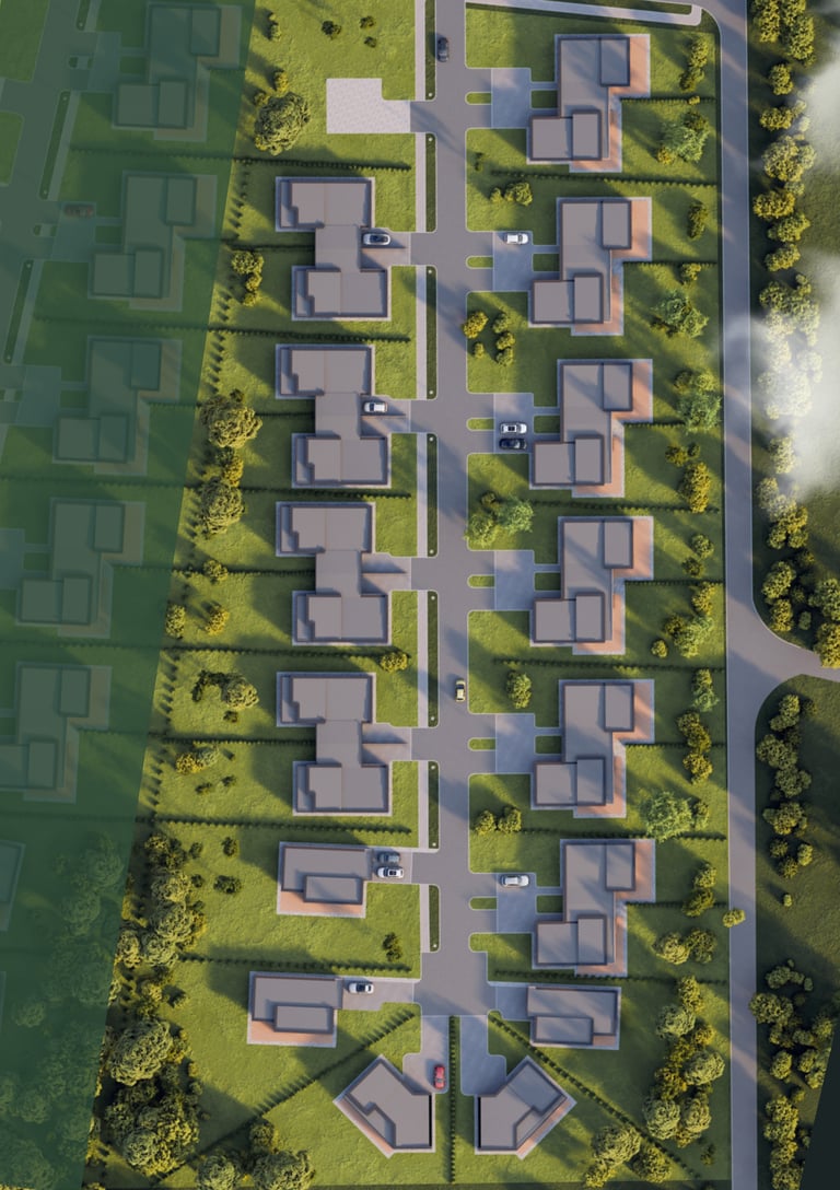 Pilnai įrengta kvartalo infrastruktūra — naujos gatvės ir pravestos komunikacijos, viskas ko reikia patogiam gyvenimui nuo pirmos dienos